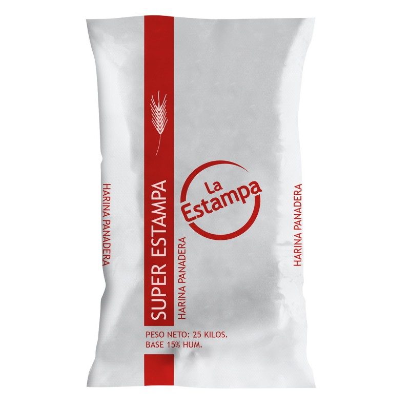 Harina Super La Estampa, elaborada a partir de una mezcla de trigos fuertes e intermedios destinada a procesos que requieran mayor trabajo mecánico dando como producto final una harina con características reológicas apropiadas para panes de volumen.