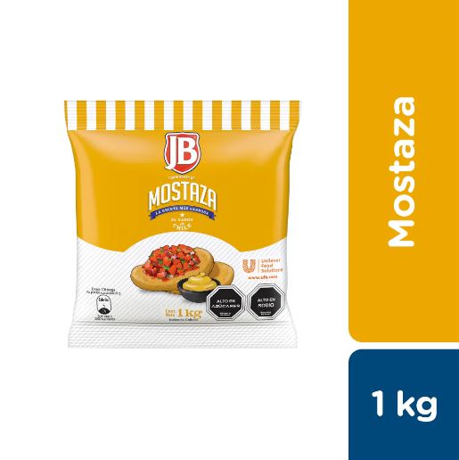 La Mostaza JB de 1 kg es un condimento chileno tradicional, de sabor equilibrado (ni muy ácido, ni muy picante, ni muy dulce), textura suave y versátil para aderezar completos, sándwiches, hamburguesas o como base para salsas, siendo ideal para realzar el sabor de diversas comidas. Se presenta en formato a granel (bolsa) y está hecha con recetas tradicionales a base de vinagre, azúcar, semilla de mostaza molida, ajo en polvo y especias como cúrcuma, con colorantes.